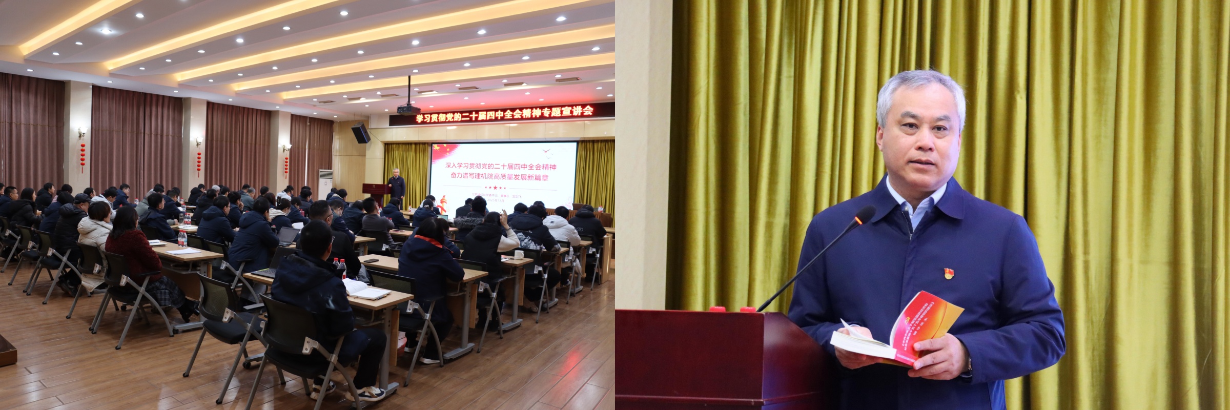 为深入学习贯彻党的二十届四中全会精神,12月30日上午,北京建机院举办学习贯彻党的二十届四中全会精神专题宣讲会,北京建机院党委书记、董事长宫剑飞作专题宣讲。