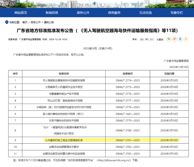 近日,由深圳分公司联合广东省建筑科学研究院集团股份有限公司共同主编的广东省工程建设地方标准《公共建筑机电工程全过程调适标准》(DB44/T 2781—2025)(以下简称“广东省调适标准”)已由广东省市场监督管理局正式发布,标志着广东省公共建筑机电工程调适工作迈入标准化、规范化发展新阶段。该标准的发布实施,将为提升华南地区公共建筑能效水平、改善室内人居环境提供有力技术支撑。