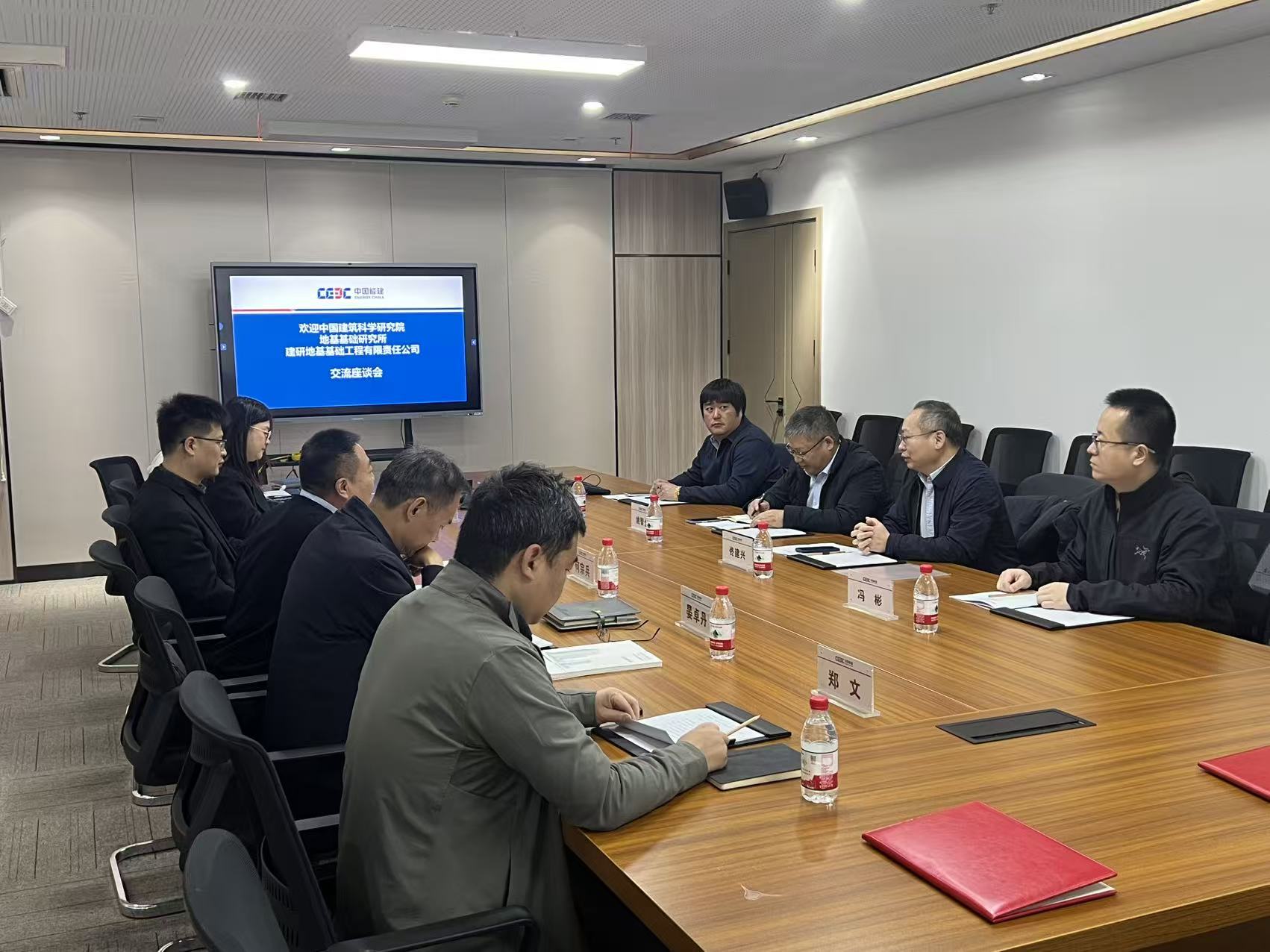 1月9日,建研地基党委委员、副总经理佟建兴带队赴中国能建湘潭市规划建筑设计院有限责任公司(以下简称“湘潭院”)开展业务交流。湘潭院党委书记、董事长何宗兵、副总经理郝子青参加座谈交流,座谈会由郝子青主持。