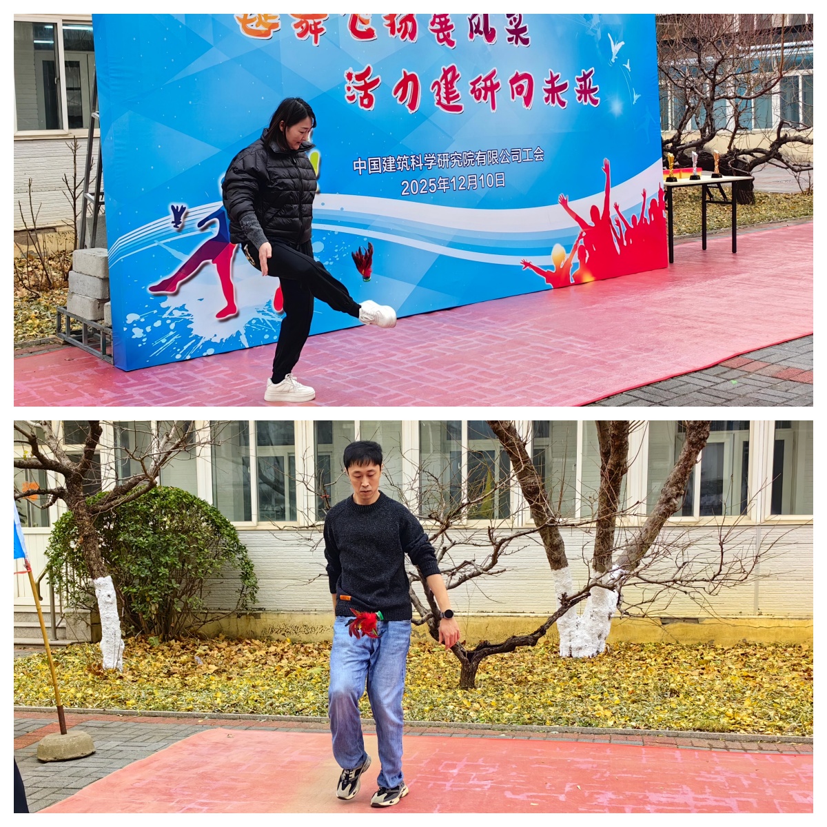 12月10日,中国建研院2025年职工踢毽比赛在热烈欢快的氛围中圆满举行。此次比赛以“毽舞飞扬展风采 活力建研向未来”为主题,旨在丰富职工精神文化生活,增强团队凝聚力与向心力,共有来自各二级单位的102名选手踊跃参与,用灵动的身姿与饱满的热情,在赛场之上书写活力篇章。